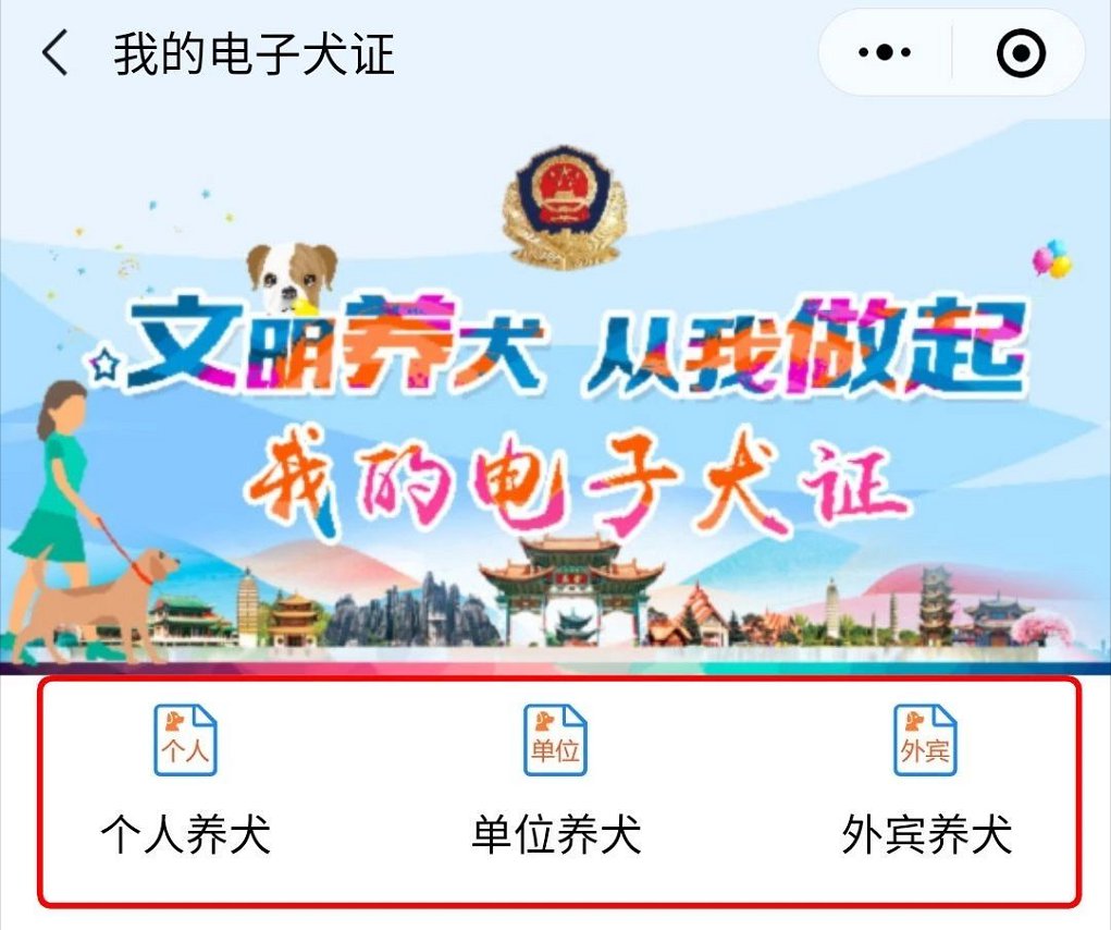1、進(jìn)入官網(wǎng),根據(jù)已辦理的電子犬證類型,調(diào)出電子犬證頁(yè)面,按已辦理犬證類型選擇對(duì)應(yīng)“個(gè)人養(yǎng)犬”、“單位養(yǎng)犬”或“外賓養(yǎng)犬”。