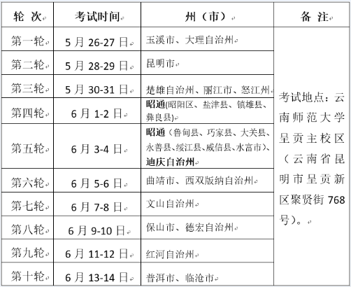 云南省2020年普通高等學(xué)校招生體育類專業(yè)統(tǒng)考時(shí)間及地點(diǎn)安排