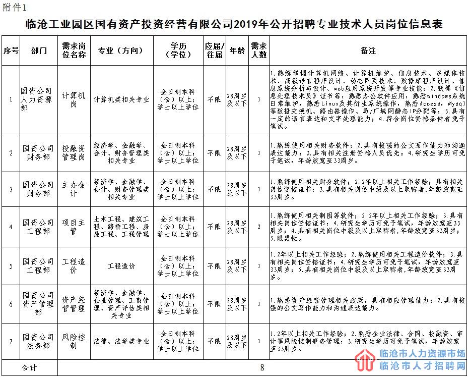 附件:1.臨滄工業(yè)園區(qū)國有資產(chǎn)投資經(jīng)營有限公司2019年公開招聘專業(yè)技術(shù)人員崗位信息表