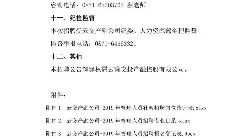 云南交投產(chǎn)融控股有限公司2019年下半年管理人員社會(huì)招聘公告