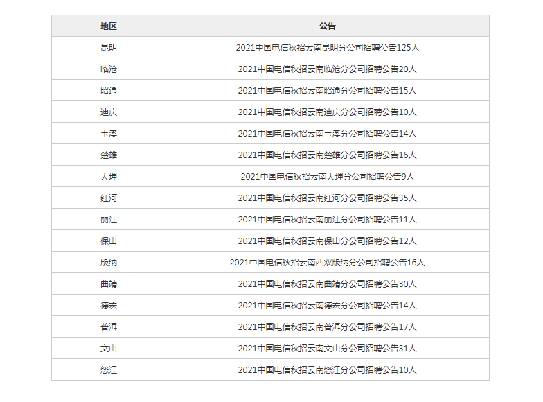 用人單位(州市分公司)中國電信昆明分公司及省公司本部工作地點(diǎn)(具體到縣分公司)昆明及下屬縣分公司