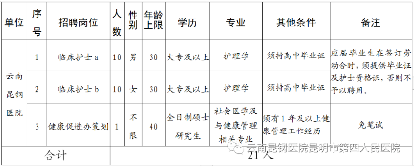 安寧市醫(yī)共體2021年工作人員(非事業(yè)編制) 招聘啟事