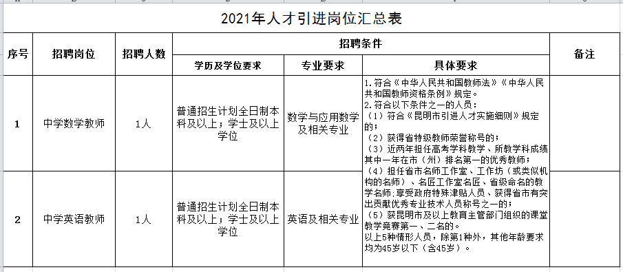 昆明滇池中學2021年人才引進公告