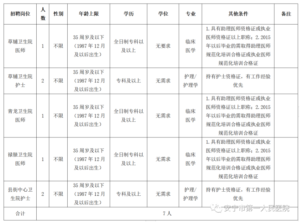 現(xiàn)醫(yī)共體下安寧市草鋪衛(wèi)生院(草鋪衛(wèi)生院衛(wèi)生院建筑面積1632平方米,距離安寧市中心6.8公里。開設(shè)診療科目包含預(yù)防保健科、全科醫(yī)療科、內(nèi)科、外科、婦產(chǎn)科、兒科、醫(yī)學(xué)檢驗(yàn)科、醫(yī)學(xué)影像科、中醫(yī)科、中西醫(yī)結(jié)合科,編制床位20張,衛(wèi)生院擁有一支較高素質(zhì)的業(yè)務(wù)隊(duì)伍,以“精湛的技術(shù),一流的服務(wù)”,贏得了當(dāng)?shù)匕傩占吧鐣鹘绲囊恢潞迷u,下轄草鋪、麒麟、青龍哨、柳樹、邵九、王家灘六個(gè)村衛(wèi)生室)、安寧市青龍衛(wèi)生院(青龍衛(wèi)生院位于安寧市青龍街道龍翔路,距離市區(qū)25公里,占地5畝,建筑面積1800平方米。開設(shè)診療科目包括內(nèi)科、兒科、外科、婦產(chǎn)科、中醫(yī)科、醫(yī)學(xué)影像科、醫(yī)學(xué)檢驗(yàn)科、預(yù)防保健科,編制床位30張)、安寧市祿脿衛(wèi)生院(祿脿衛(wèi)生院位于安寧市祿脿街道新驛路,醫(yī)院設(shè)有綜合門診部、綜合住院部、中醫(yī)科、心腦血管救治站及慢性病管理中心,現(xiàn)有編制床位40張,實(shí)際開放60張,下設(shè)7個(gè)村衛(wèi)生室)和安寧市縣街中心衛(wèi)生院(縣街中心衛(wèi)生院位于安寧市縣街街道梨河路32號,提供預(yù)防、康復(fù)、保健、健康教育、基本醫(yī)療、中醫(yī)、計(jì)劃生育技術(shù)指導(dǎo)等綜合服務(wù),現(xiàn)有編制床位42張,下設(shè)10個(gè)村衛(wèi)生室)因工作需要,面向社會招聘非事業(yè)編工作人員。