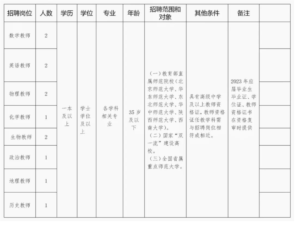 云南省保山第一中學(xué)2023年2月公開招聘教師8個(gè)崗位共12人,具體崗位如下: