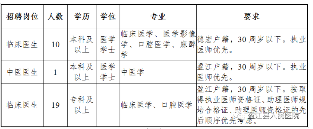 盈江縣人民醫(yī)院2023年招聘編外合同制衛(wèi)生專(zhuān)業(yè)技術(shù)人員的第一次公告