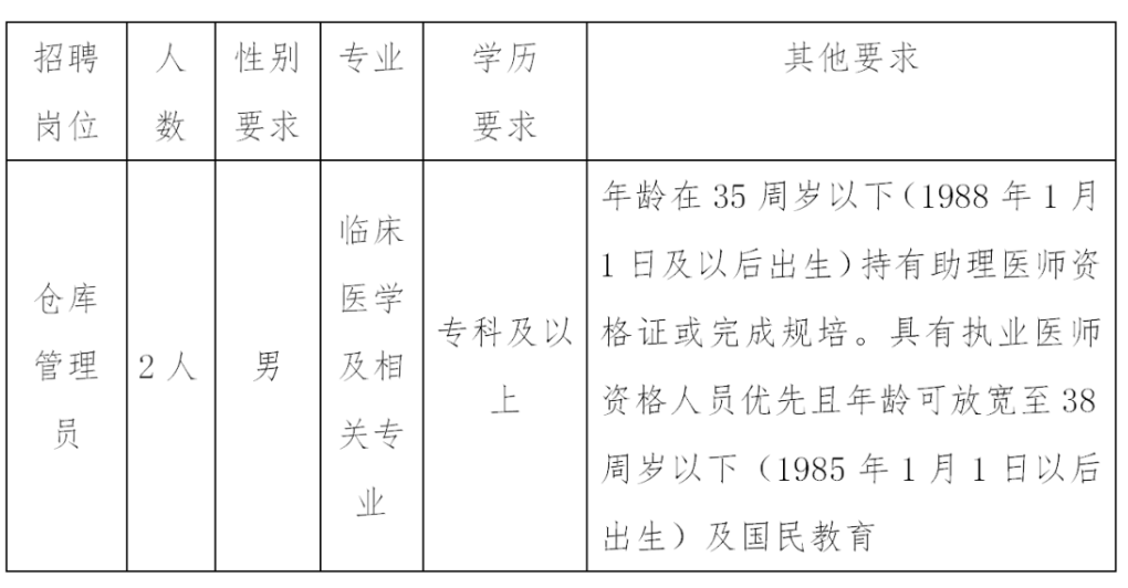 5.具備扎實(shí)的醫(yī)學(xué)專業(yè)理論知識(shí)和實(shí)踐操作技能,熟練操作規(guī)程,工作需要強(qiáng)體力勞動(dòng)(隨時(shí)搬運(yùn)倉庫內(nèi)重型物資)。