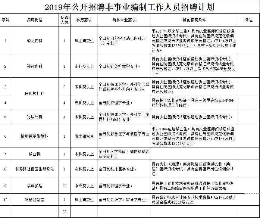 根據(jù)醫(yī)院工作需要,經(jīng)研究決定,2019年云南省第三人民醫(yī)院面向社會公開招聘非事業(yè)編制工作人員33人,現(xiàn)將有關(guān)招聘事宜公告如下: