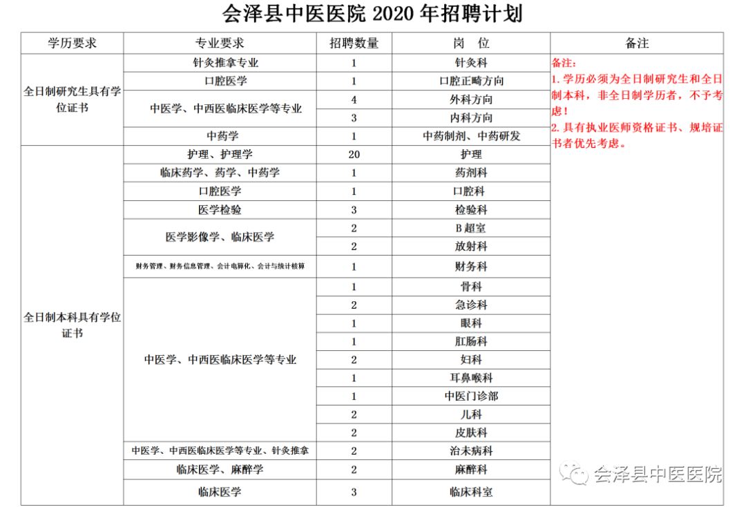 (二)會澤縣中醫(yī)醫(yī)院2020年招聘計劃