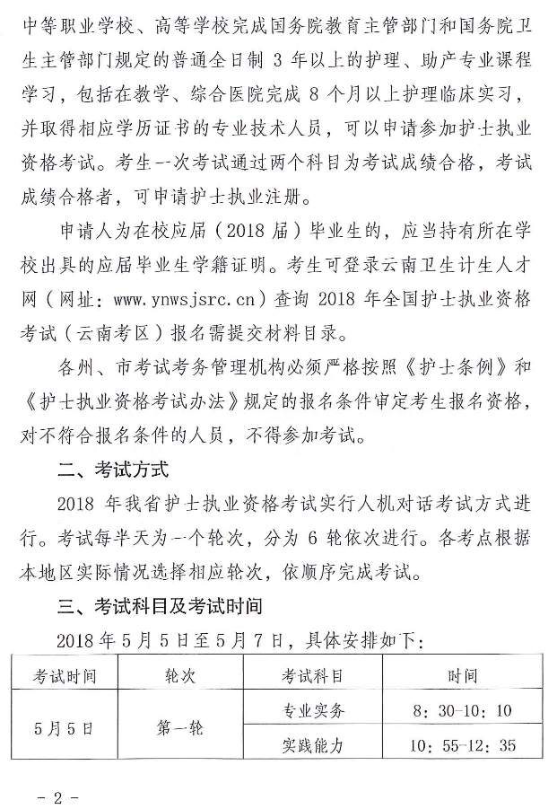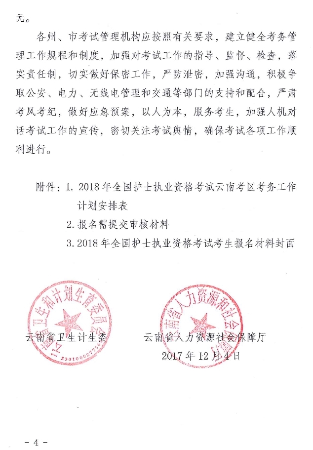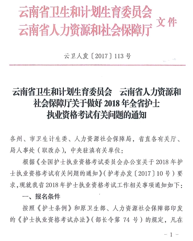 云南省衛(wèi)計委云南省人社廳關于做好2018年全省護士執(zhí)業(yè)資格考試有關問題的通知