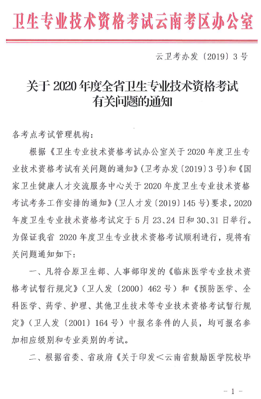 關(guān)于2020年度我省衛(wèi)生專業(yè)技術(shù)資格考試有關(guān)問題的通知